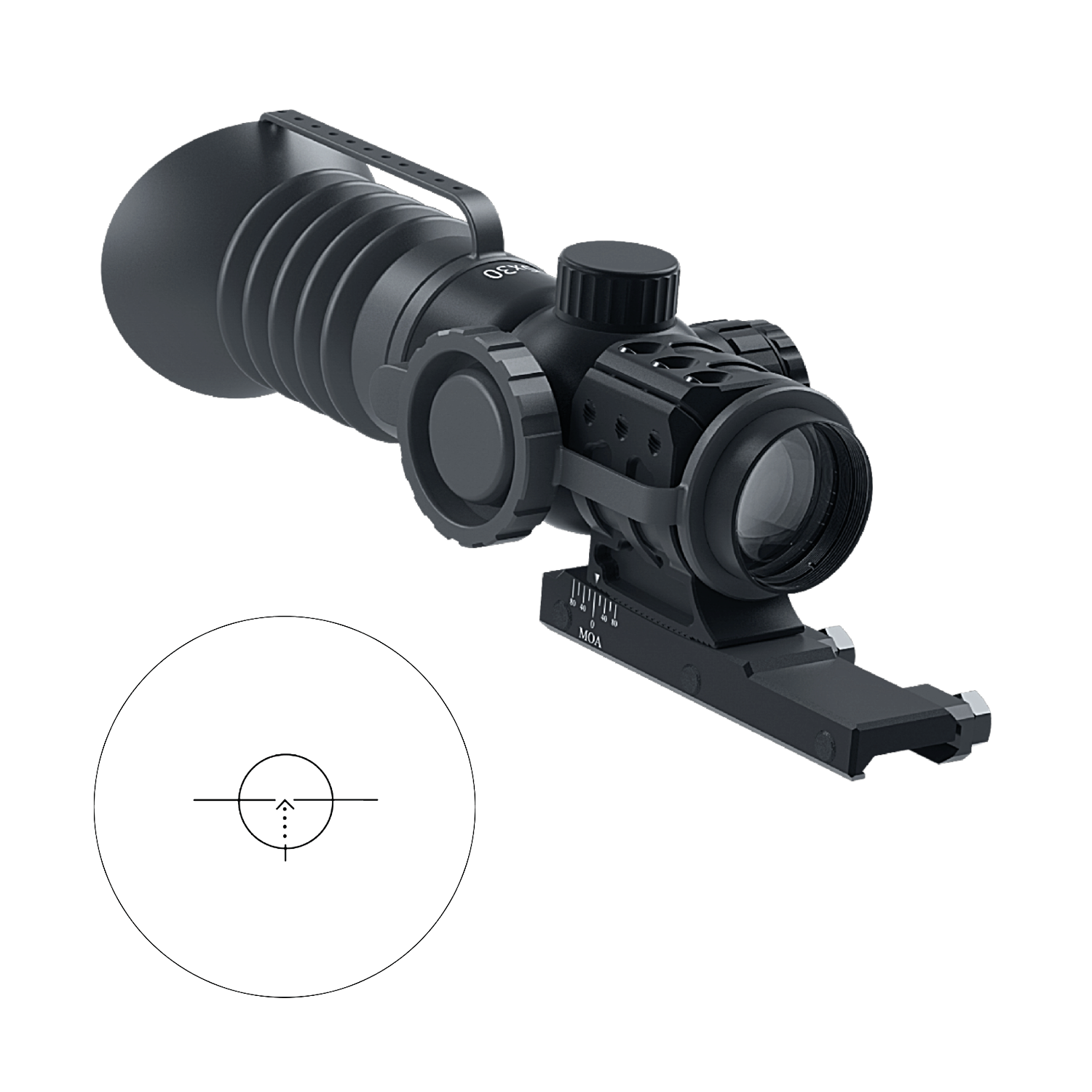 Lightweight and compact CQB style sight with medium (45mm) sight with medium eye relief to suit lots of various calibres. Field of view 2x wider than traditional scopes.