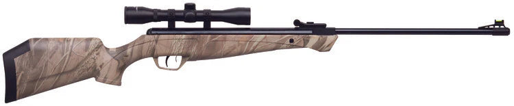 The Crosman Stealth nitro piston break barrel rifle comes complete with rifled steel barrel, all-weather camo synthetic stock, two stage trigger and Centre-Point 4 x 32 scope and mounts. Rubber butt pad makes for comfortable shooting.