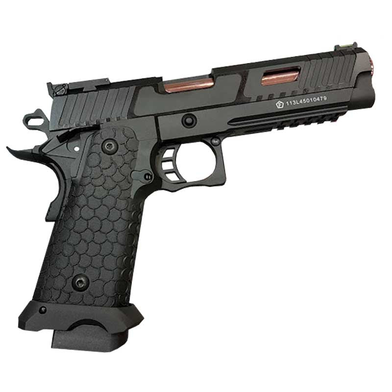 The JW3 STI Combat Master is the culmination of the ultimate competition pistol platform combined with master levels of tuning to create a handgun like no other. Wielded by Baba Yaga himself, this is the pistol used by John Wick in the 2019 film John Wick 3: Parabellum. Based on an STI 2011, the JW3 STI Combat Master is expertly crafted with slide lightening cuts to improve the cyclic speed and reduce perceived recoil. The forward-swept front and rear slide serrations give a solid purchase for weapon manipulation.