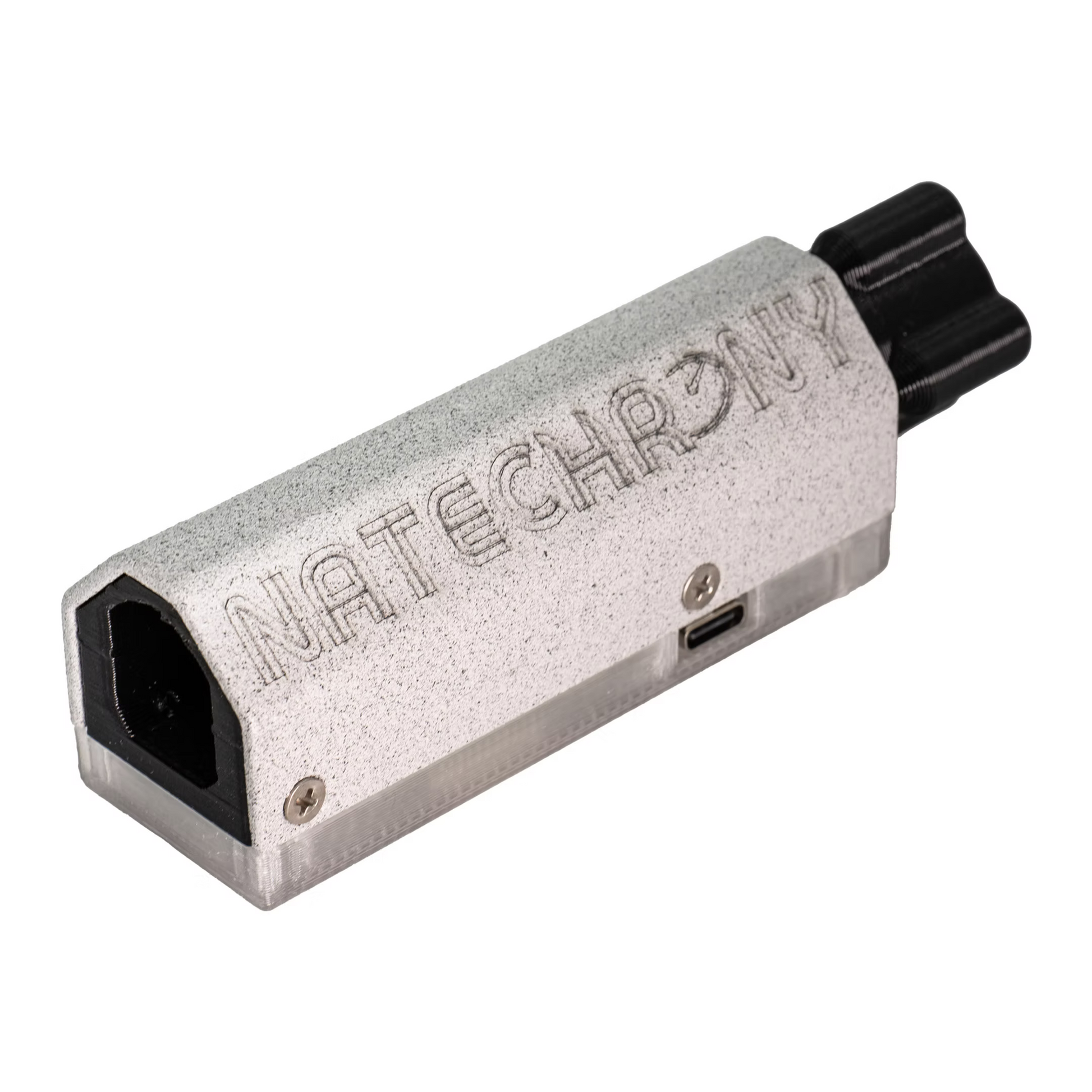NateChrony V2.5 Chronograph + Shooter Stability Analysis. For those chasing precision, the SteadyShot goes beyond velocity. Featuring an accelerometer to measure rifle stability, it reveals movement errors for long-range accuracy. Calibrated to within 1 fps at 1,000 fps, it delivers unmatched accuracy* with no alignment issues thanks to its muzzle-mounted design. Connect directly to your phone, tablet, or laptop via Wi-Fi** (no app required), with full shot string data, graphing, and voice readouts. Includes: SteadyShot chronograph, USB-C cable, 2x ½” UNF adapters. Specs: Up to .45 cal / 150 fpe, 5V USB power.