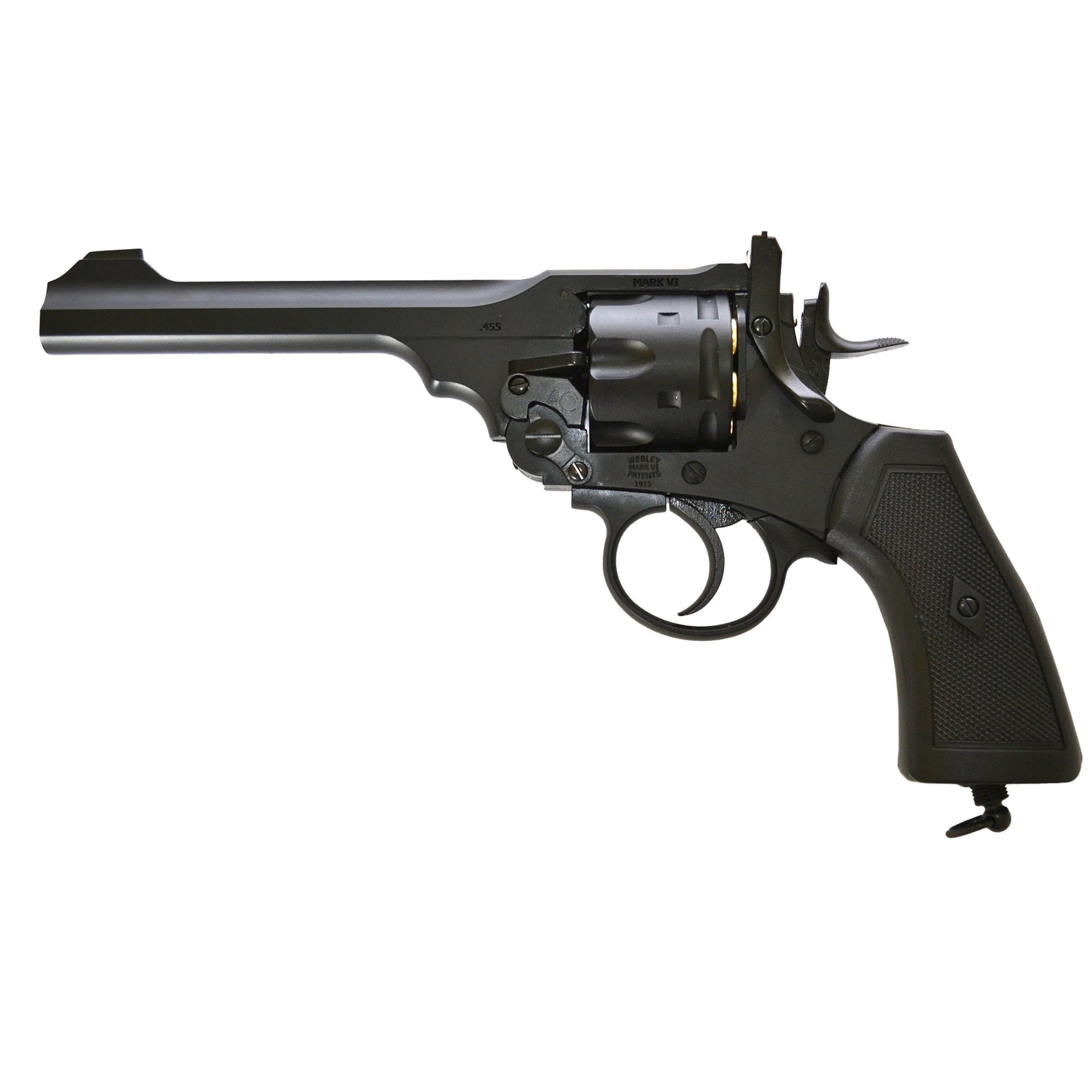 Webley MKVI .455 Webley CO2 Service Revolver. 6 Shot Capacity CO2 powered with 6" Barrel, 3 Joules - Black 4.5mm